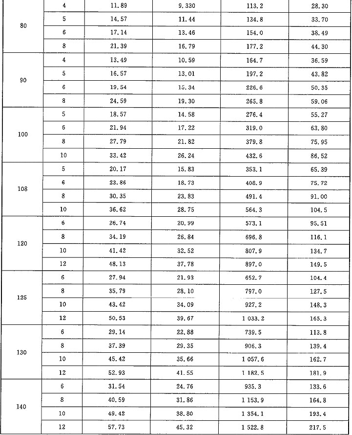 表A.4 平橢圓形鋼管的尺寸、理論重量和物理參數(shù)
