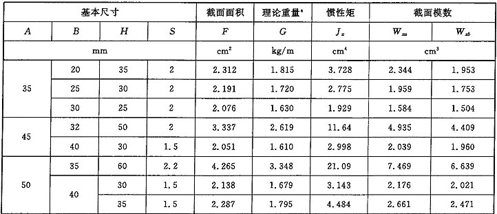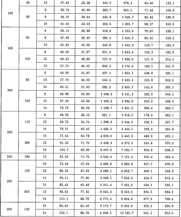 表A.2 矩形鋼管的尺寸、理論重量和物理參數(shù)