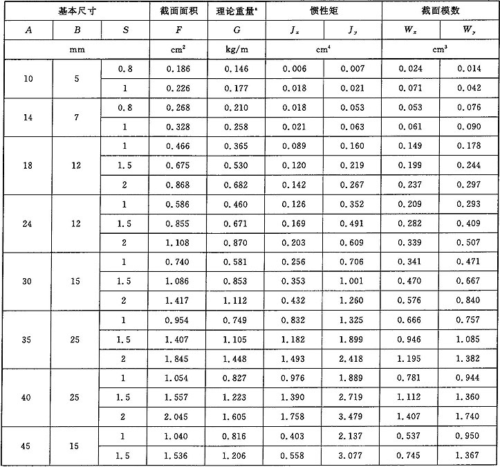表A.1 方形鋼管的尺寸、理論重量和物理參數(shù)