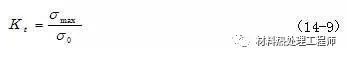 缺口處的應(yīng)力集中是造成零部件疲勞強度大幅度下降的最主要的因素。應(yīng)力集中使得缺口根部的實際應(yīng)力遠(yuǎn)大于名義應(yīng)力,使該處產(chǎn)生疲勞裂紋,最終導(dǎo)致零件失效或破壞。應(yīng)力集中的程度用應(yīng)力集中系數(shù)(又稱理論應(yīng)力集中系數(shù))Kt來描述,表達(dá)式如下。