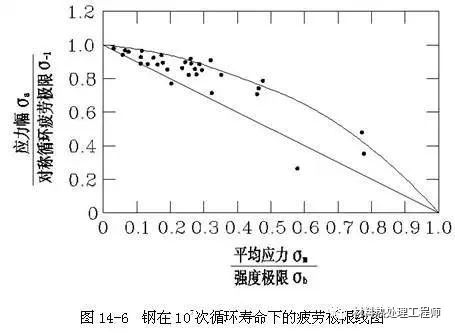 圖14-6的橫坐標(biāo)為平均應(yīng)力σm(或殘余應(yīng)力)和強度極限σb的比值,縱坐標(biāo)為應(yīng)力