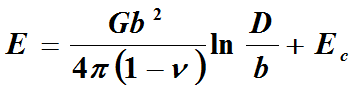 式中G剪切模量,b柏氏矢量,ν泊松比,Ec位錯中心能量,D位錯間距。