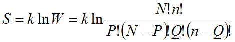 (3).偏析阻力是組態(tài)熵(結(jié)構(gòu)熵):溶質(zhì)原子趨向于混亂分布,晶內(nèi)位置數(shù)(N)大于晶界位置數(shù)(n),構(gòu)成了偏析的阻力。設(shè)晶內(nèi)及晶界的溶質(zhì)原子數(shù)分別為P和Q,則P個溶質(zhì)原子占據(jù)N個位置和Q個溶質(zhì)原子占據(jù)n個位置的組態(tài)熵為: