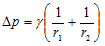 Vm為摩爾體積。如取界面兩側(cè)Vm為常數(shù),積分得到球狀界面兩側(cè)的化學(xué)位差為: