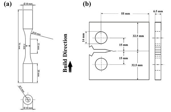 圖1 (a)圓形軸向疲勞試樣(b)(CT)試樣的圖紙