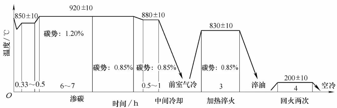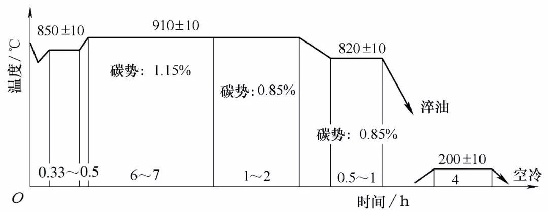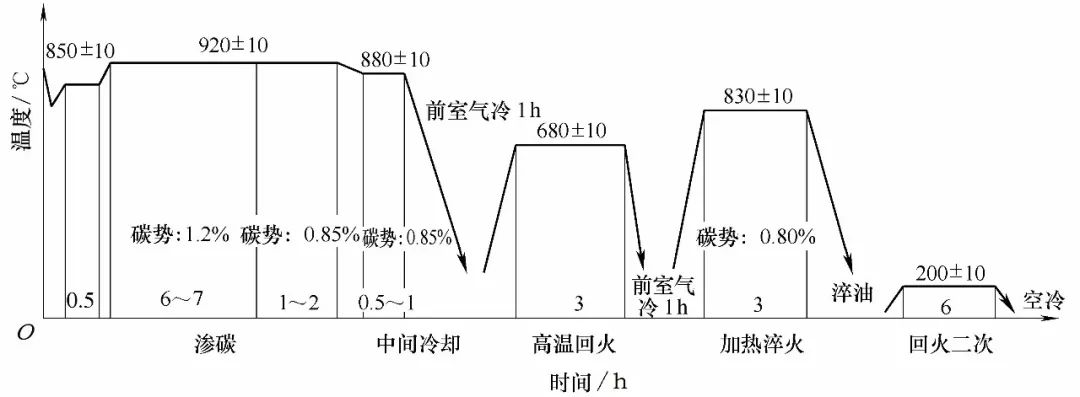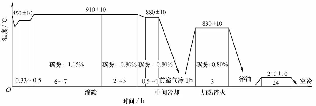 圖6  “滲碳緩冷、一次淬火”工藝曲線