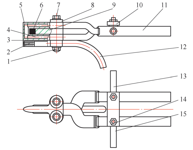 1.銅螺母 2.噴水器 3.絕緣板 4.導體冷卻水腔