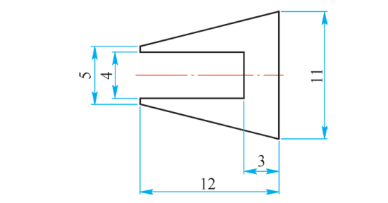 據前述分析,欲改善齒根部加熱狀態,必須減少施感導體前部寬度。但是,按傳統感應器設計方式,施感導體的前冷卻水路(見圖6)為圓柱形直孔,圓孔截面占據了施感導體豎直部分的大部分面積,其側壁已經很薄,沒有余地再減小齒根部施感導體的橫向尺寸。如果把前冷卻水路后移,將減弱對施感導體前部的冷卻效果,因此將前冷卻水路橫截面形狀由圓形改為狹長形狀,這樣在保證導體冷卻水流通面積的同時縮小了齒根部施感導體的橫向尺寸。