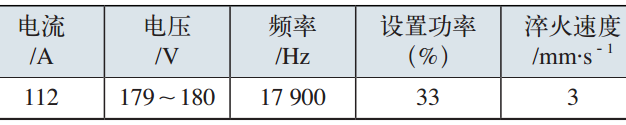 使用前述試制成功的感應器,在多功能中頻感應淬火機床上對該齒輪進行沿齒槽連續加熱表面淬火。工件和感應器的裝夾與圖3方式相同。工藝參數見表1。采用德潤寶BW淬火冷卻介質,濃度13%。