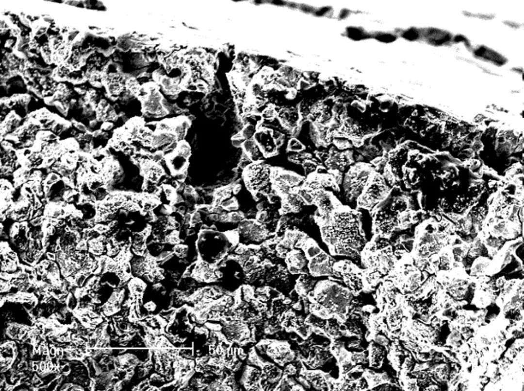 經(jīng)過酸洗和用毛刷去除腐蝕產(chǎn)物后的斷口形貌如圖2所示。采用掃描電子顯微鏡對去除腐蝕產(chǎn)物后的斷口的微觀特征進(jìn)行了觀察,結(jié)果表明,斷裂螺栓斷口呈現(xiàn)典型的沿晶斷裂特征,斷口呈現(xiàn)冰糖狀特征。