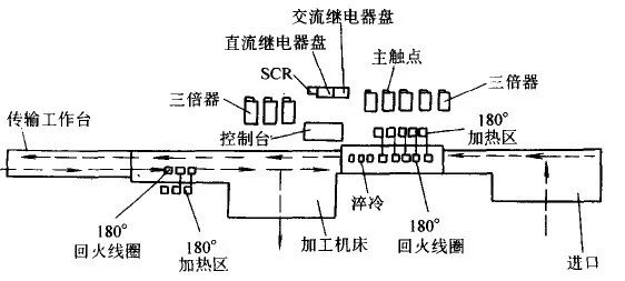 注:管材從右側進入,加熱奧氏體化后經過淬冷、輸出、回火。隨后被送到加工機床冷卻。