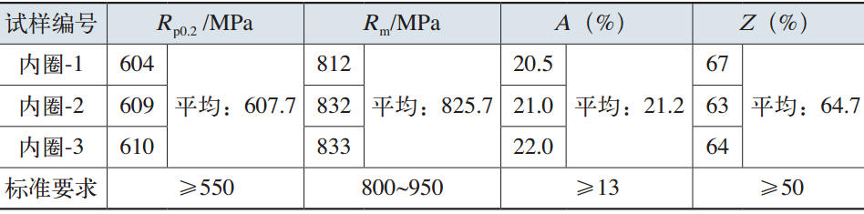 表6  變槳軸承內圈材料的室溫拉伸性能(20℃)
