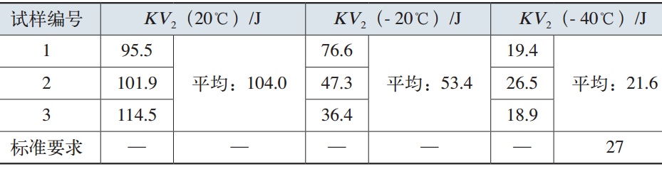 軸承內圈材料的室溫和低溫沖擊吸收能量,如表7所示。其-40℃下的沖擊吸收能量未達到GB/T 29717—2013要求。