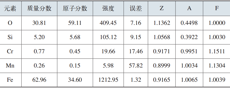 疲勞源從輪齒的齒根處形成,齒根表面有大面積的氧化或腐蝕產物存在,如圖20所示。用能譜分析裂紋源附近齒根的表面成分,其能譜圖如圖21所示,元素定量結果如表8所示。