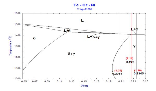 圖1 25.8%Cr時(shí)的Fe-Ni-Cr相圖