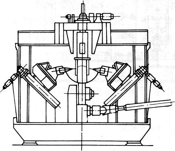 簡(jiǎn)史 排輥成形起源于美國。20世紀(jì)60年代最早的排輥是在焊接的籠形框架上安裝了一些小輥?zhàn)樱靡源孑伿匠尚螜C(jī)水平機(jī)架問的立輥,這樣減少了管坯的邊緣折皺,提高了焊接質(zhì)量。每換一次產(chǎn)品規(guī)格換一組籠子。這種成形機(jī)實(shí)際上是不可調(diào)的半排輥成形機(jī)的雛形,其優(yōu)點(diǎn)是:減少了功率消耗和軋輥的磨損,特別對(duì)于大口徑焊管,消除了管坯的劃傷。60年代末至70年代初,焊管向大口徑方向發(fā)展,根據(jù)已有的生產(chǎn)經(jīng)驗(yàn)美國人托倫斯(Torrens)設(shè)計(jì)了世界上第一套全排輥成形機(jī)。它取消了中間水平機(jī)架和立輥機(jī)架,采用單半徑孔型系統(tǒng),幾組可調(diào)被動(dòng)小輥可適用于所有規(guī)格的產(chǎn)品。但這種成形機(jī)調(diào)整很麻煩。70年代初美籍華人張智慧發(fā)明了適用于雙半徑孔型系統(tǒng)和調(diào)整簡(jiǎn)便的全排輥軋機(jī)(圖3)并獲得專利權(quán).