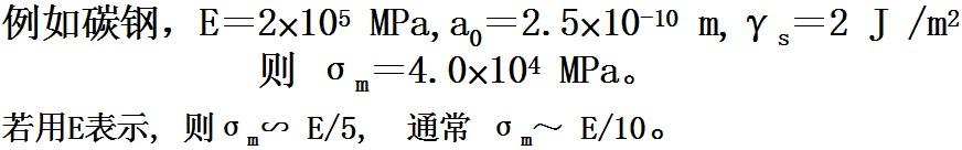 把物性常數(shù)E、γs 、 a0分別代入(2-16)中,  就可求得材料的理論斷裂強(qiáng)度(斷裂應(yīng)力)。