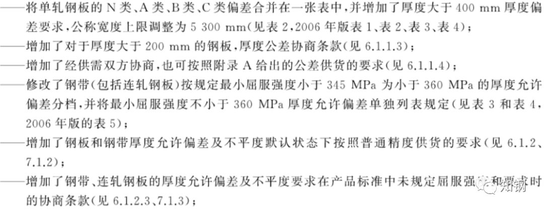 此次修訂關于單軋鋼板厚度偏差方面實質性改動不大。主要變動如下: