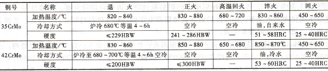 35CrMo鋼和42CrMo鋼的熱處理工藝參數(shù)見表3-12。