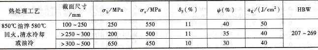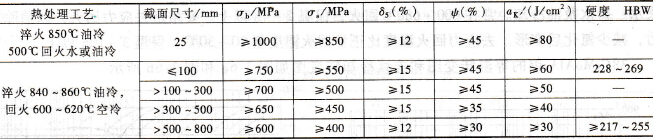 表3-16 42CrMo鋼不同截面調質后的力學性能