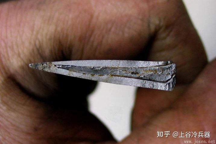 而至于包鋼的缺點,一方面這種技術很難出雙刃,所以一般不拿來鍛劍。另一方面,這樣只有外頭薄薄一層是硬鋼的結構,一旦打磨次數過多,將里面的軟鋼露出來,刀就徹底失去了斬切力,算是報廢了。