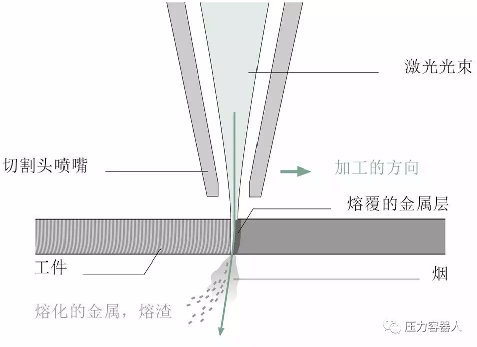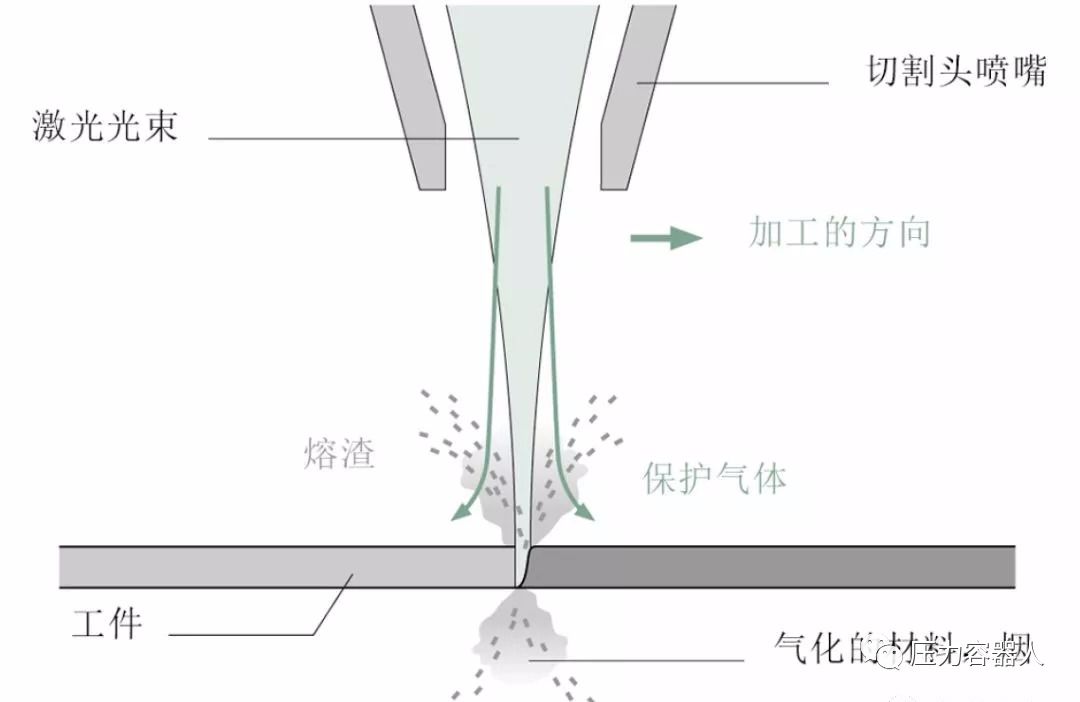 圖1 激光束熔化工件,切割氣吹走切口中的熔融材料和熔渣