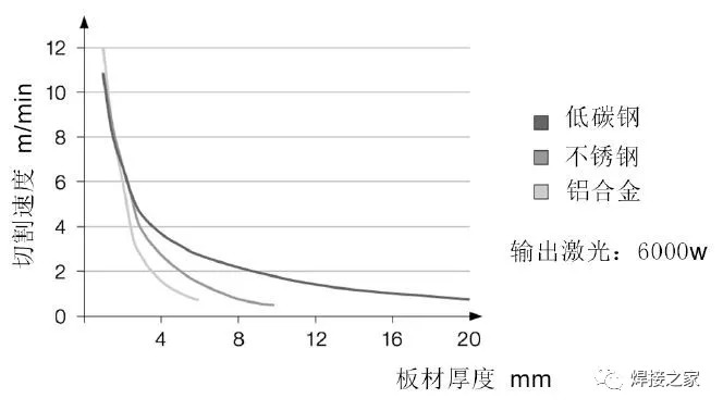 圖6 切割速度隨著板材厚度增加而降低