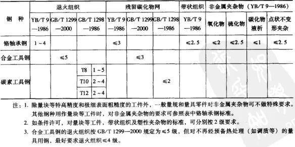 ▼ 對量具用鋼的原材料顯微組織的級別要求