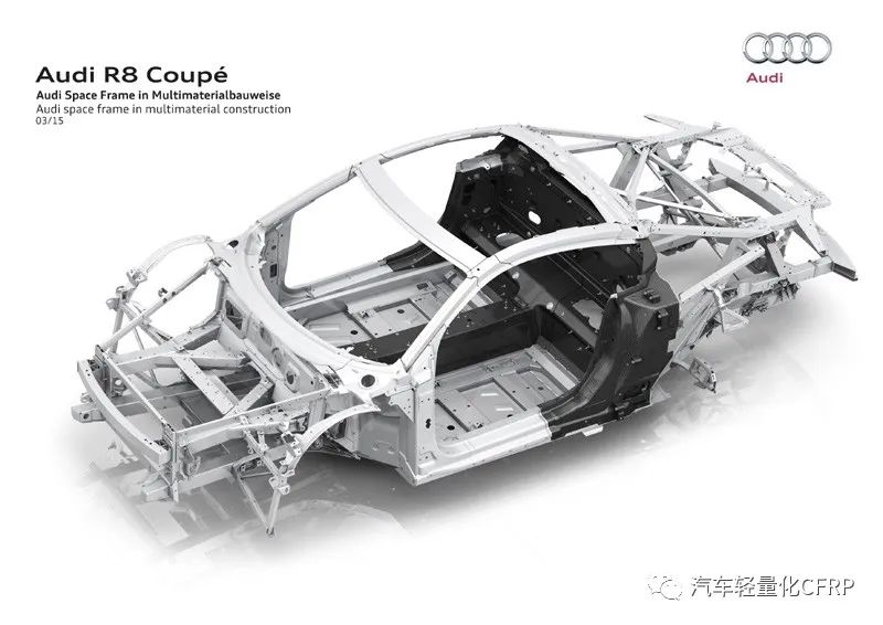 奧迪公司堅(jiān)信多材料空間框架結(jié)構(gòu)(Multimaterial Space Frame)是打造大體積車輛的正確途徑。與CFRP車身相比,重量方面具有相同的優(yōu)勢(shì),最大的優(yōu)勢(shì)體現(xiàn)在總體能量平衡更佳以及成本更低。