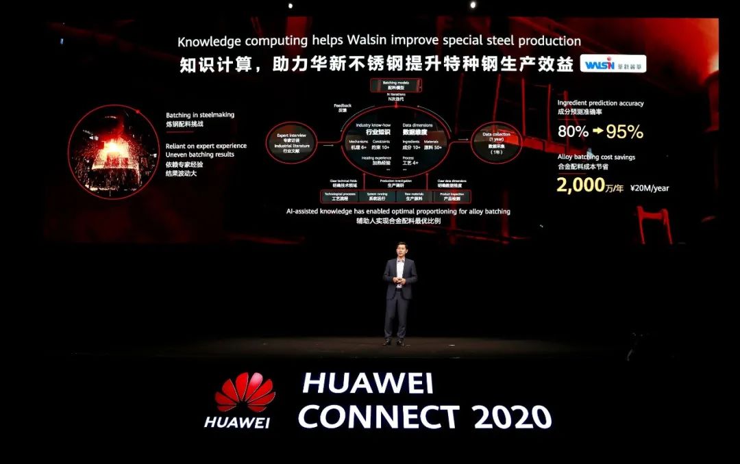 中國早已成為世界鋼鐵生產大國。統(tǒng)計數據顯示,2019年我國鋼鐵產量接近10億噸,占全球總產量18.7億噸的一多半,超過了其他國家的總和。在數量占據絕對領先地位的同時,中國在高端合金鋼材方面的市場份額卻比較低。因此,鋼鐵行業(yè)原有的靠規(guī)模擴張的粗放發(fā)展模式難以為繼,落后的產能將逐漸被淘汰,生產方式急需從批量式向精細化轉變。在這樣的背景下,產品的成本、質量、檔次和穩(wěn)定性,將成為企業(yè)生存的有力保障。合金鋼也叫特種鋼,是通過在碳素鋼里適量地加入一種或幾種合金元素,使鋼的組織結構發(fā)生變化,并具備硬度大、耐磨、耐腐蝕、耐高溫等不同的特殊性能,從而應用到嚴苛的生產環(huán)境中。在合金鋼的生產過程中,合金配件是關鍵環(huán)節(jié)。傳統(tǒng)的合金配料是由人工完成,配料過程主要依賴于專家經驗,配比結果會出現較大波動。同時,由于原料價格隨市場波動,不同批次成分含量不同,為人工配料增加了難度,往往需要重復多次調整配比。華新不銹鋼目前每天要完成16次合金配料,即使多次調整配料動作,鋼水出鋼的準確率約在80%。這種主要依賴于專家經驗的生產方式,已經滿足不了企業(yè)創(chuàng)新生產的要求。為此,華新不銹鋼與華為云合作,將合金配料的元素守恒機理模型、專家經驗等隱性知識注入到AI中,與AI深度融合;基于多模態(tài)的數據感知驅動,構建成分軟測量AI模型,賦能合金配料工程師進行優(yōu)化決策,找到符合鋼水質量的最優(yōu)合金配料比例,同時保證合金成本最低。華新不銹鋼目前配料過程往往需要多次調整動作完成,鋼水出鋼的準確率約在80%。華新不銹鋼目前的生產節(jié)奏,每天要完成16次合金配料。傳統(tǒng)的主要依賴于專家經驗的生產方式,已經滿足不了企業(yè)創(chuàng)新生產的要求。通過這樣的努力,華新不銹鋼基于AI輔助可實現10秒內完成最優(yōu)合金配比計算,實現合金成本最優(yōu);并可精準預測終點鋼水成分,預測準確率達到95%以上,生產中一次添加并能完成配料合成。平均每噸可降低成本100元,按20萬噸的年產能計算,每年可為企業(yè)節(jié)省成本2000萬元。