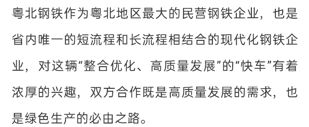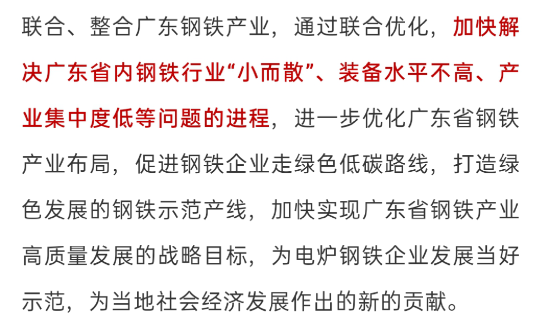 據(jù)悉,2020年12月5日,廣州市政府與中國寶武鋼鐵集團有限公司簽署關于中南鋼鐵的合作框架協(xié)議,并在廣州成立寶武集團中南鋼鐵有限公司,中南鋼鐵將通過市場化手段對省內(nèi)鋼鐵企業(yè)進行整合優(yōu)化,破解省內(nèi)鋼鐵企業(yè)生產(chǎn)合規(guī)性難題,推動廣東鋼鐵行業(yè)高質(zhì)量發(fā)展。
