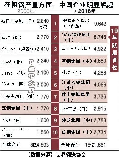 結合上表中可以看出,自2000年至2019年,寶武鋼鐵集團是首次躍居首位,雖然中國鋼鐵產量已連續多年榮登全球第一,但出現全球產量第一的企業還是首次。