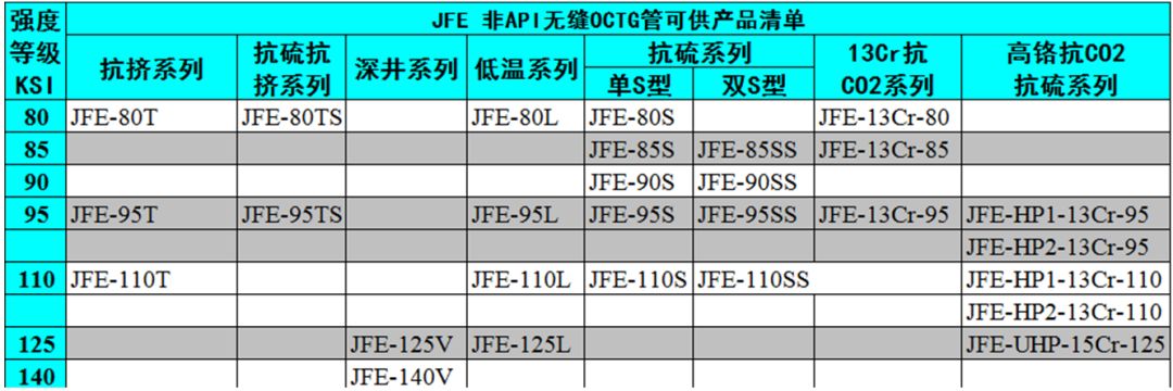 產(chǎn)品特色:一共有60個鋼級,最高鋼級是170ksi。擁有比較全面的產(chǎn)品系列,其儲氣井系列自行劃分出系列,有一定特色。目前還未明確分類并供應(yīng)高延展性、非標(biāo)鋼級、膨脹套管、API增強(qiáng)型、低溫和連續(xù)油管等五個系列。