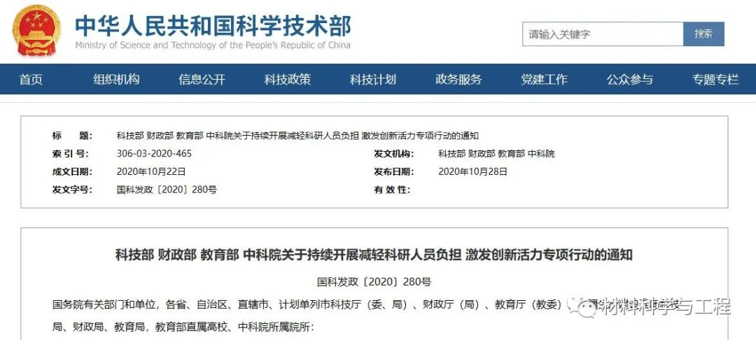 10月28日,科技部網(wǎng)站發(fā)布了《科技部 財(cái)政部 教育部 中科院關(guān)于持續(xù)開(kāi)展減輕科研人員負(fù)擔(dān) 激發(fā)創(chuàng)新活力專項(xiàng)行動(dòng)的通知》。