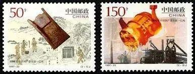 1997年11月25日,為紀念1996年中國鋼產量突破一億噸,原中國郵電部發(fā)行了《1996年中國鋼產量突破一億噸》紀念郵票,全套2枚。