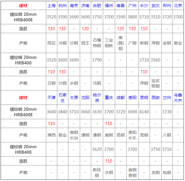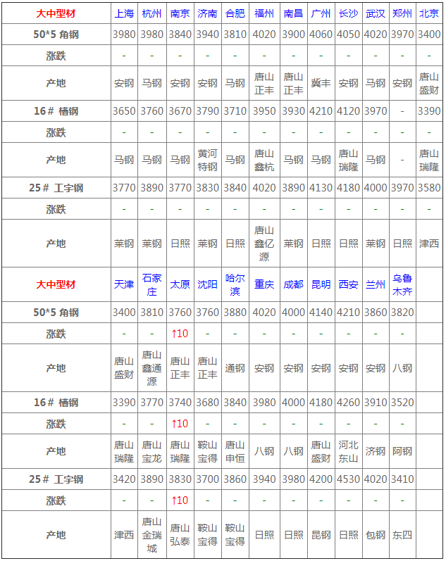 5 7月3日熱帶價格:窄幅整理; 期螺高位震蕩為主,提振市場信心,整體表現偏強,各成品規格普遍上漲。然市價雖跟漲,但成交跟進不足,商家堅挺出貨為主。主要是淡季需求釋放困難,下游盈利不高觀望氛圍濃厚,導致有價無市的被動局面。 6 7月3日型材價格:穩中震蕩; 鋼坯窄幅上漲10,期螺持紅運轉,對現貨市場起到一定的提振作用。現階段部分鋼廠已經出臺新一輪指導價,但各公司漲跌各異,經銷商正處于猶豫階段,不好做過多的調整,且型價較上月同期相比還是有所下調。下游方面型市需求仍不能有所突破,出梅仍需一段時間,陰雨連綿導致戶外施工進度減緩,淡季效應彰顯。預計短期內型價將持穩前行。