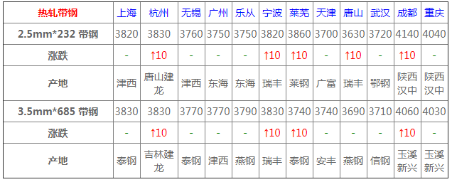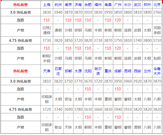 1 7月3日建材價格:偏強整理10-20元/噸; 期螺高位震蕩為主,提振市場信心,整體表現偏強,市價雖跟漲,但成交跟進不足,商家堅挺出貨為主。 2 7月3日熱軋板卷價格:隨行就市; 今熱軋市場窄幅上調,現主流規格售價在3740-3750元/噸,從了解的情況來看,期鋼全線飄紅,貿易商心態向好,報價窄幅高靠,主流資源價格較昨日上調10元左右,成交方面,市場活躍度一般,成交多偏向低位資源,考慮現貨價格多隨之期貨價格變動調整,綜上所述,故預計短期熱卷主流價格或隨行就市出貨。