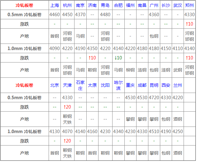 3 7月3日冷軋板卷價格:高位盤整; 從唐山停產消息出來開始,京津冀地區一致處于回漲當中,外加近兩日期貨盤面回升,市場心態略有向好,但總體仍偏于謹慎,高報低走的現象仍存,尤其是盤中期貨震蕩,漲后現貨成交受阻的情況下,商家仍以促進成交為主,不過總體出貨價格水平較昨日確有上行。綜合考慮看,故預計短期冷軋卷板價格高位盤整。