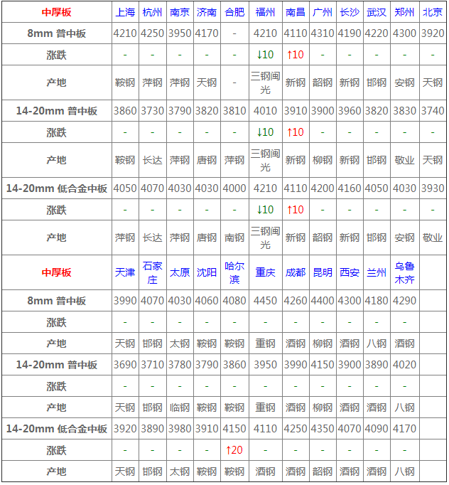 4 7月3日中厚板價格:穩中整理; 今日市場價格主流持穩,期鋼持紅震蕩,帶動商家心態向好,但操作多持謹慎態勢,促成交為主,下游市場信心不足,采購能力有限,因此價格上漲動力不足,但是原料端鋼坯價格窄幅拉漲支撐,多考慮成本端因素,價格也不具備跌勢,市場漲跌兩難境地,多空博弈下,市場觀望心態濃,因此料短期價格或穩中整理。
