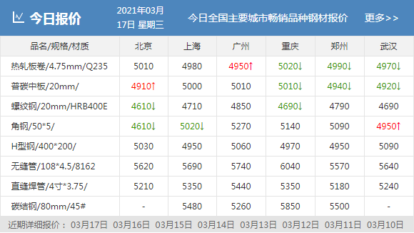 鋼價漲一天跌一天,市場觀望情緒濃厚,成交整體偏弱,部分剛需用戶逢低采購,現貨報價穩中小幅下調,期鋼午后轉漲,鋼價下行遇支撐。 首先來看看市場報價情況: 期鋼午后翻紅,現貨小幅下調 期鋼午后翻紅,期螺上漲50收報4785,期卷上漲12收報4984,鐵礦石上漲6.5收報1068,焦煤上漲78.5收報1602.5,焦炭上漲70收報2320.5。 現貨方面,螺紋鋼24個市場中9個市場下跌10-20,20mmHRB400E平均價格4698元/噸,較上個交易日下調6元/噸; 熱卷24個市場中10個市場下跌10-30,3個市場上漲10-20,4.75熱軋板卷平均價格4960元/噸,較上個交易日下調8元/噸。 中板24個市場中8個市場下跌10-50,1個市場上漲20,14-20mm普中板平均價格4967元/噸,較上個交易日下調6元/噸。 再來看看影響鋼價的核心因素: 鐵礦石到港量周減159萬噸 據HiFleet數據顯示,本周全國鐵礦石到港量2000萬噸,較前一周下降159萬噸。發運量來看,全球鐵礦石發運量較前一周增加361萬噸,發往中國1699萬噸,較前一周增加246萬噸。鐵礦石短期供應并未出現明顯改善,近兩日,鐵礦石價格仍維持上漲,普氏62%鐵礦石指數上漲2.65美元,報166.3美元/干噸,月均價170.8美元/干噸。進口鐵礦石較前一日上漲10-25元/千噸,對成材端仍有支撐。 地方政府加大重點項目投資 兩會過后各地重大項目陸續加速,山東確定1600個2021年省級重點項目,總投資3.1萬億,有1.8萬億500個省重大項目。其中重大基建項目86個,總投6574億元。分階段來看,先期項目867個,總投1.46萬億,新開工592個,總投8698億元,準備項目141個,總投7685億元,“兩新一重”成為重點,用鋼需求有望持續回升。 夜查鋼企環保加大限產預期 盡管3月15日開始,唐山就已經解除重污染II級應急響應,但此次環保部暗訪對市場影響較大,且唐山市發布立行立改措施,繼續執行的《唐山市3月份大氣污染綜合治理攻堅月方案》,執法力度或加大。值得關注的是,3月14日至15日夜間,武安市生態環境分局開展夜查鋼企環保行動,3月對鋼廠環保核查力度將繼續加嚴,有助于加快市場去庫存。 鋼價近期波動頻繁,觀望情緒較濃,市場對后市看法存在一定分歧: 中鋼網重點項目負責人王銀文認為,目前價格比較高,終端采購積極性不好,相比往年今年詢單減少,很多項目年前其實已經提前備貨了,一季度訂單量沒有市場預期的高。所以價格如果沒有一次像樣的下跌,很多單子都壓著繼續滯后。鋼廠現在不愿意降價,主要還是一季度訂單支撐著,目前終端對高價不認同,可能會影響鋼廠二季度訂單量,所以我個人認為3月底之前需要一次下跌行情,但這一波下跌時間預計會很短。 那么短期價格究竟會如何波動: 多空博弈仍在持續,一方面,終端對高價接受度不高,投機性需求下降,采購相對謹慎,影響了需求的釋放。另一方面,宏觀氛圍持續向好,關注3月18日-19日中美會晤可能帶來的利好消息,且目前鐵礦石持續高位,支撐鋼廠挺價。預計明日鋼價將有部分小漲行情。 你就記住一句話 調整不是事 還是會漲! 目前300000+人已關注加入我們