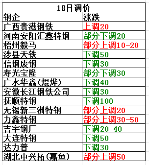 3月18日河南安陽匯鑫特鋼部分下調20:鋼筋切粒3400,管頭3440,鋼板料3340,中廢廢鋼3150,不含稅。