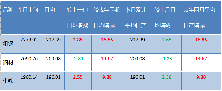 4月上旬粗鋼產(chǎn)量同比增長16.86%