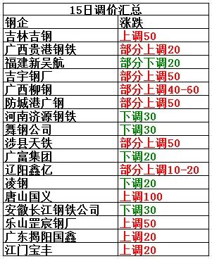 15日唐山廢鋼調價:重a3290-3320,一級破碎料3200-3230,剪切料2880-2910,鋼坯頭3440-3470,鋼板料3360-3400,鋼筋切頭3590-3630,矽鋼片3150-3180,馬蹄鐵3290-3350,不含稅。