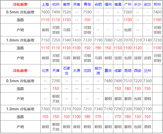 3 5月12日冷軋板卷價格:偏強(qiáng)運(yùn)行; 今全國冷軋漲勢依舊,幅度50-110,各地商家心態(tài)不一,現(xiàn)貨價格仍居高位,市場操作出現(xiàn)分歧,部分商家較為謹(jǐn)慎,以出貨為主,終端資金成本壓力加大,多以剛需拿貨為主,市場整體實際成交一般。