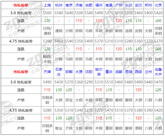 今全國熱卷市場漲跌穩均有,幅度10-60,期卷震蕩運行,商家操作上有所分歧,挺價意愿不強,市場交投氛圍偏弱,整體成交少量;