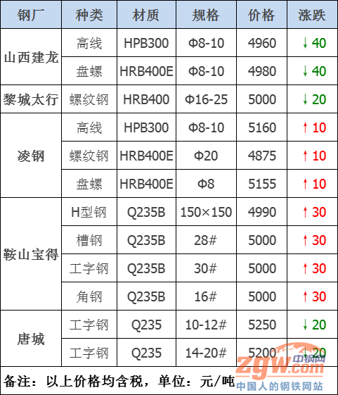 據數據監測,今日共17家鋼廠調價,其中漲幅最高為鞍山寶得型材,調價幅度30元/噸,跌幅最大為山西建龍建材,調價幅度40元/噸,具體調價明細如下: 鋼廠調價 萊鋼永鋒建材價格平穩 山西美錦建材價格平穩 武安裕華高線價格平穩 凌鋼建材價格上調10元/噸 山西建龍建材下調40元/噸 黎城太行建材下調20元/噸 電力型材價格平穩 大成工字鋼價格平穩 弘泰工字鋼價格平穩 宏潤H型鋼價格平穩 鑫億源H型鋼價格平穩 山東傳洋型材價格平穩 唐城工字鋼下調20元/噸 鞍山寶得型材上調30元/噸 天鋼板材價格平穩 普陽中厚板價格平穩 敬業中厚板價格平穩 鋼廠調價占比 上調2家,占比11.7%,調價幅度10-30元/噸。 下調3家,占比16.7%,調價幅度20-40元/噸。 平穩12家,占比70.6%。 行情簡評 今日鋼廠價格穩中調整,螺紋主力漲0.86%,報5147。期螺持紅上行提振市場心態,但下游用戶的備貨意愿不強,采購力度未見明顯放量。華北因交通管制及近期暴雨天氣影響,市場出貨不佳。綜合考慮,預計短期鋼廠價格偏弱震蕩。