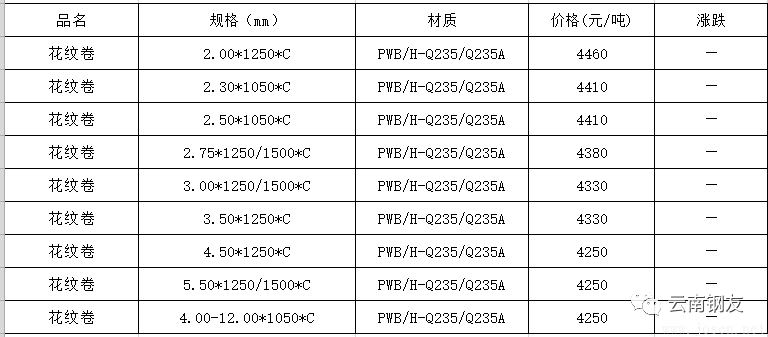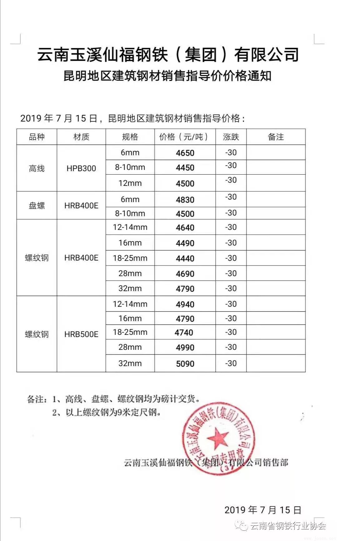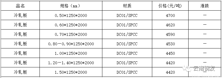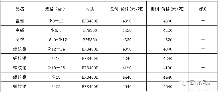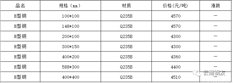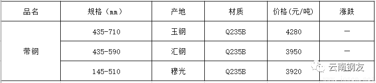 1、以上表列價格為現款、含稅、云南鋼友自提價格;