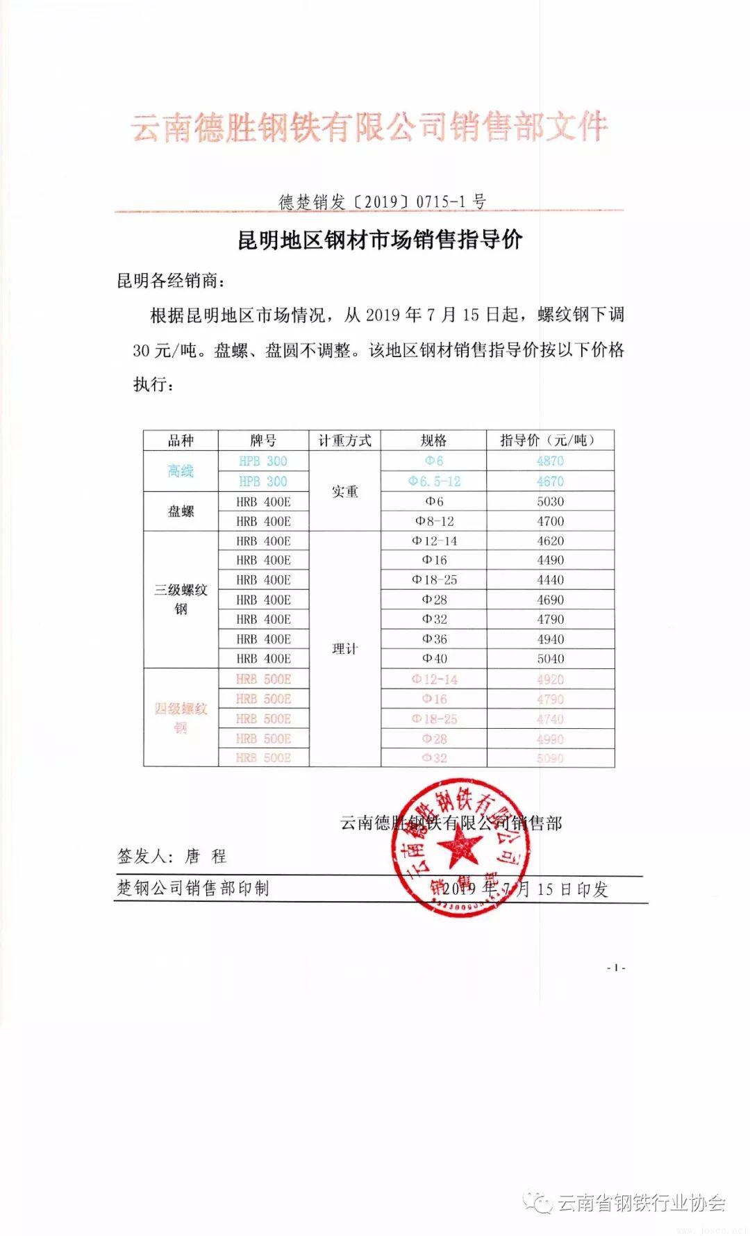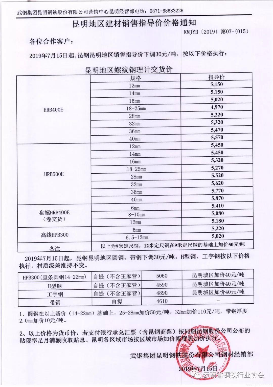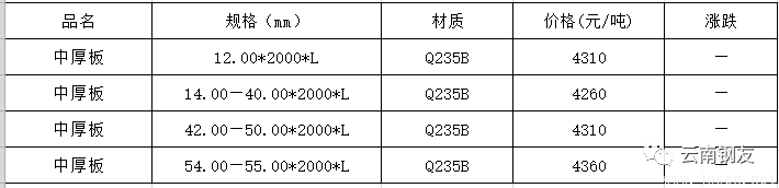 1、以上表列產品鋼廠/產地為:昆鋼;寶鋼;首鋼;