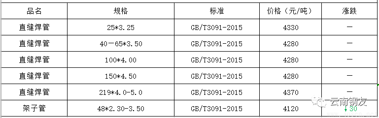 22日昆明市場架子管小幅下跌、直縫焊管部分價格暫穩觀望,具體如下(過磅):