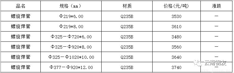 22日昆明市場螺旋焊管價格暫穩觀望,具體如下(理計):